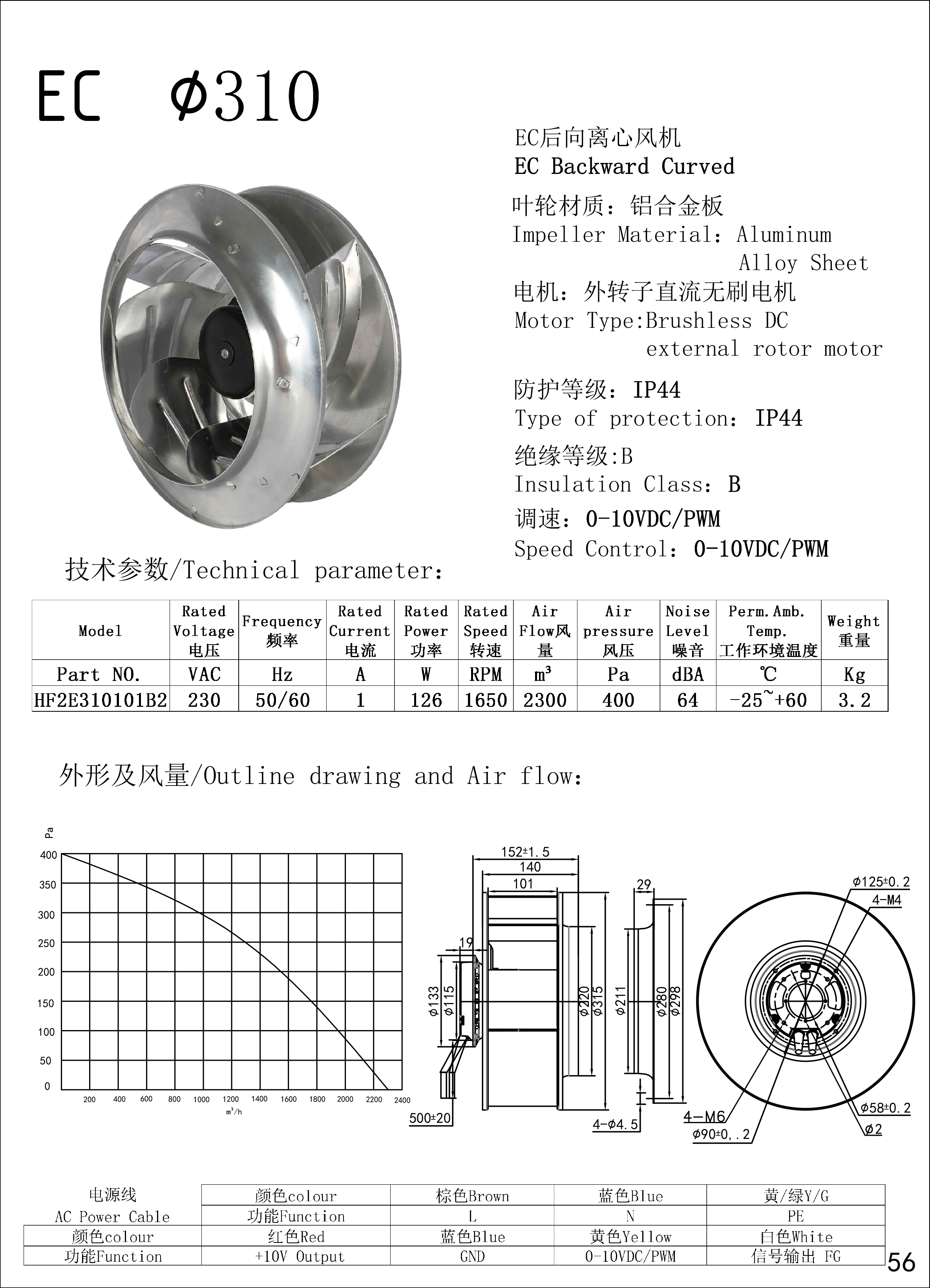 DC backward centrifugal fan